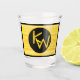 Add personalised style to your drinkware with a custom-made shot glass. Retro Lemon Yellow Black Monogram Initial Shot Glass. Personalise with your own initials. Great gift idea.