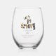 60th birthday party personalized with name and date stemless wine glass for your sixtieth birthday party celebration. The words "Let's Get Groovy" are custom designed using trending Retro Black and Gold font typography. . Text colors for the words below can be changed using the edit menu. Fun, classy and stylish!