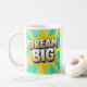 Bold inspirational quote retro bubble lettering bright yellow and blue colors.