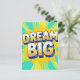 Bold inspirational quote retro bubble lettering bright yellow and blue colors.