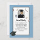Make waves with your graduation announcement! This fun and stylish invitation boasts a trendy light blue wavy squiggle design that's sure to catch the eye. Proudly display your grad's photo framed by a classic graduation cap, and customise it with their name and all the exciting party information. It's an energetic and unique way to invite friends and family to celebrate this major milestone!