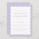 A stylish retro style bridal shower invitation in lilac and white with a wavy border