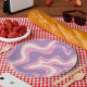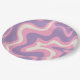 Retro Liquid Swirl Groovy Abstract Purple Pink Paper Plate