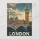 Send a slice of Great Britain with this retro-style postcard. It features a stunning, vintage-look illustration of London's most famous landmarks, including the iconic Big Ben, the Houses of Parliament, and a classic red double-decker bus crossing a bridge. This postcard is perfect for sharing your travel adventures or as a memento for anyone who loves London's timeless charm.