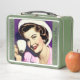 Introducing our delightful retro lunch box, a charming piece of nostalgia that will transport you back to the glamorous charm of the 1950s. With its vibrant colors and stylish design, this lunch box features a radiant portrayal of a 1950s stylized woman, emanating an aura of elegance and relaxation. "Don't forget your lunch! XOXOX Love Mum"