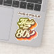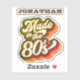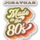 Customisable name sticker with retro font quote "made in the 80s" in vintage brown and orange colours.