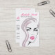 Business card with a beautiful vintage style girl face in pink on a white background. Perfect for your company promotion. Suitable for make-up artists, cosmetologists, lash extension, hairdressers, stylists, spa salon , hair and beauty salon or model agency. Customisable.