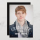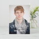 Retro Typography Photo Graduation Party Invitation Card for male graduates with a simple overlay design. Elke Clarke © Customise with your grad information by selecting customise it or use the template menu prompts. Exchange the sample photo for your own. Flexible design to allow choice of many different card sizes depending on your photo of your grad.