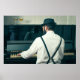 Retro man playing piano and smoking poster
