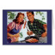 Retro man and woman greeting card. Customisable text inside.