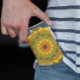 This retro mandala design features orange, blue, and yellow. Funky and vibrant visuals for anyone who likes bright colors!