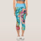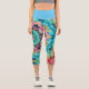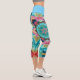 Retro Mandala Flower Blue Pink and Green Capri Leggings