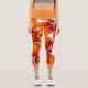 Retro Mandala Flower Orange White and Yellow Capri Leggings