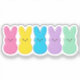 Add a sweet touch of nostalgia to your holiday with this "Easter Peeps" sticker! Featuring a colorful lineup of iconic marshmallow bunnies in vibrant retro shades, this design captures the sugary fun of childhood Easter mornings. Perfect for decorating candy jars, Easter baskets, laptops, or water bottles. A must-have for anyone with a sweet tooth!
