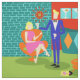 This Retro Martini Couple Fabric looks like a scene out of a romantic comedy. The setting of this 1960's style, minimalist art design is an elegantly decorated, mid century modern house or apartment. The cast is an attractive couple enjoying an evening filled with sparkling conversation, good music and bottomless drinks. The room features a green floor, and an aqua and teal brick wall. Resting comfortably in a mod, orange egg chair is a beautiful woman. Her bright pink dress is just short enough to show off her shapely gams. With the wave of a hand, this blonde beauty has the immediate attention of her male admirer. Her fair haired companion is wearing a blue suit, white shirt and black bow tie. In his hands, he is holding two, crystal martini glasses with floating olives. Don't worry. He's offering one to his lady friend. The pair is having such a delightful time that neither is taking notice of the hour showing on the kitschy, red, starburst clock on the brick wall behind them. On a recessed fiery red wall, there are three Classic Movie Martini Stretched Canvas Prints, also available from StrangeLittleOnion's Zazzle store (hint, hint!) Two of the prints feature turquoise backgrounds and one is on a dramatic black background. Centred beneath the prints is an elegant wet bar. The front of the teal bar has three harlequin diamonds, in shades of orange, turquoise and green. We can see the silhouettes of martini glasses resting on the counter top. Across the room, an orange ottoman is holding a blue and black, portable record player. On the floor, we see the vinyl records and a bright yellow album cover. This attractive duo is having such a delightful time that neither is taking notice of the hour showing on the kitschy, red, starburst clock on the brick wall behind them.