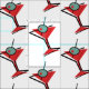 An abstract retro martini glass with olive in red and green with black outline