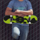 Smile melt skateboard in lime green and black inspired by the '90s and Y2K aesthetic.
