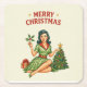 Add festive retro flair to your holiday table with this Merry Christmas pin-up paper coaster. Featuring a glamorous 1950s-style pin-up girl in a green polka-dot dress, classic holly, a decorated Christmas tree, and warm vintage colors, this napkin brings nostalgic mid-century charm to any Christmas celebration.