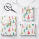 Retro Merry Christmas Trees Fun Holiday Pattern Wrapping Paper Sheet