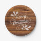 Retro Merry Christmas Typography Barn Wood Paper Plate