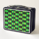 Whether you use it to bring your lunch or tote your lipstick , you'll love this retro style metal lunchbox with artwork by Buttercup's Clothing and Collectables! This super cute lunch box features an abstract plaid pattern in shades of green and black. Various background colours available.