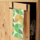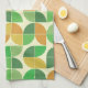 Retro Mid century Geometric floral green Tea Towel