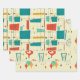Retro Mid Century Mod Atomic Space Age Teal Red Wrapping Paper Sheets