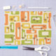 Colourful Retro Mid Century Modern Abstract Pattern in Yellow Orange Green & Brown.