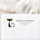 This customizeable typography and script return address label design features a retro mid century modern "atomic" black cat.
