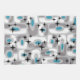 Retro Mid Century Modern Cosmic Abstract Pattern Black Grey White & Blue..