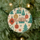 Add timeless charm to your holiday decor with this retro mid century modern ornament. Featuring a classic yet modern geometric design with pinetrees, floral and botanical accents, snowflakes, and star details in festive red and green, it’s perfect for bringing a stylish vintage touch to your winter celebrations.