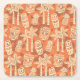Retro Mid Century Modern Tiki Pattern Square Paper Coaster