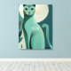 Add some feline flair to your home decor with this charming cat-themed canvas print! Featuring a retro mid century abstract style design in elegant green tones, this canvas is perfect for cat lovers who appreciate a touch of vintage charm. The print also includes the word "Meow" in a fun retro font that can be customised to your liking. Whether you're looking to decorate your living room, bedroom, or home office, this canvas print is sure to delight both you and your furry friends.