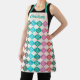 Bake for the holidays in style with this apron featuring a retro vintage style mid century modern atomic pattern in green, red, and pink, personalised with your name.