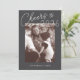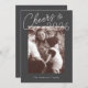 Retro minimalist New Years photo cards featuring retro style hand lettering with personalized holiday message and photo.