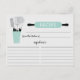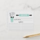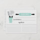 Fun retro bridal shower kitchen recipe cards featuring a mint rolling pin & kitchen tools. The front of our recipe card offers room for a recipe title, from the kitchen of and ingredients space. Flip our recipe card over to view our lined back for recipe directions. Visit our shop for matching bridal shower invitations & recipe binders available in our shop in a large assortment of popular wedding shower colours. Perfect bridal shower invitation insert for a stock the kitchen bridal shower.
