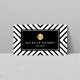 An optical black and white pattern creates visual interest as a background on this modern business card template. This design features faux gold monogram with your initial for a unique logo for your brand. Art and design © 1201AM CREATIVE - www.1201am.com