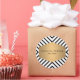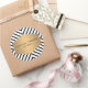 Coordinates with the Retro Mod Black and White Pattern with Gold Emblem Business Card Template by 1201AM. An optical black and white pattern creates visual interest as a background on this personalised sticker design. The faux gold emblem contains your name or business name, becoming a unique identity for your brand. © 1201AM CREATIVE