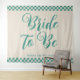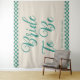 Mod bride to be backdrop, With a groovy retro teal color and cream checkerboard pattern border.