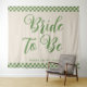 Mod bride to be backdrop, With a groovy retro avocado green color and cream checkerboard pattern border.