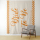 Mod bride to be backdrop, With a groovy retro orange color and cream checkerboard pattern border.