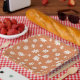 Fun, retro Hippy daisy 60s 70s design with groovy white flowers and burnt orange, mustard gold and white retro colour palette to celebrate any occasion in GROOVY STYLE! Art created by internationally licensed artist and designer, Audrey Jeanne Roberts, copyright.