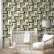 Retro Mod Ovals Beige Green Wallpaper