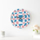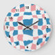 Retro Mod Pink Blue Checkerboard Abstract Large Clock