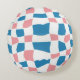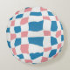 Retro Mod Pink Blue Chequerboard Abstract Round Cushion