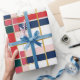Retro MOD Plaid Red Blue Gold Wrapping Paper