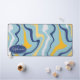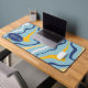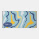 Retro Modern Abstract Marble Swirl Blue And Yellow Desk Mat