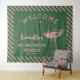 personalised welcome banner retro bachelorette party tapestry in pink and green with a cocktail glass is perfect as a bachelorette party photo backdrop. Celebrate your bridal shower in style with the perfect cocktail party theme in bold pink, the perfect theme for the nostalgic vintage 70s bride and her bridesmaids.