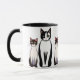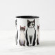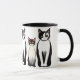 Mug in an illustration of Mid-Century Modern inspired, black and white cats and kittens