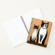 Journal in an illustration of a Mid-Century Modern inspired, black and white cat and kitten, on a mustard gold background